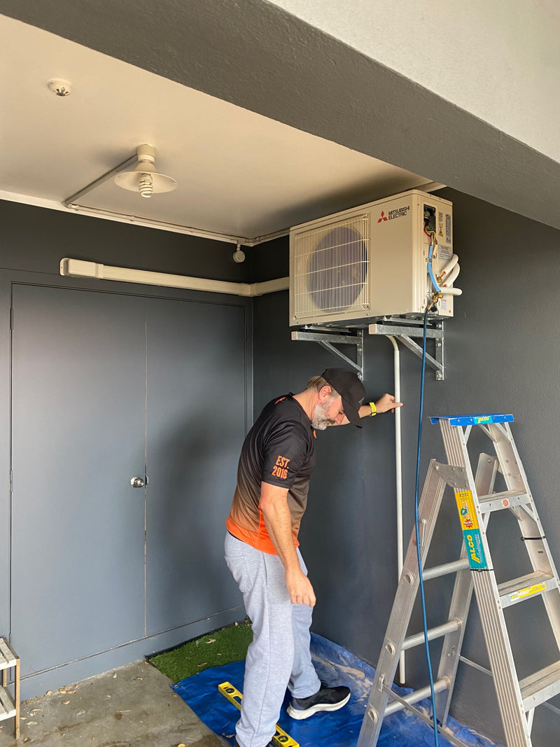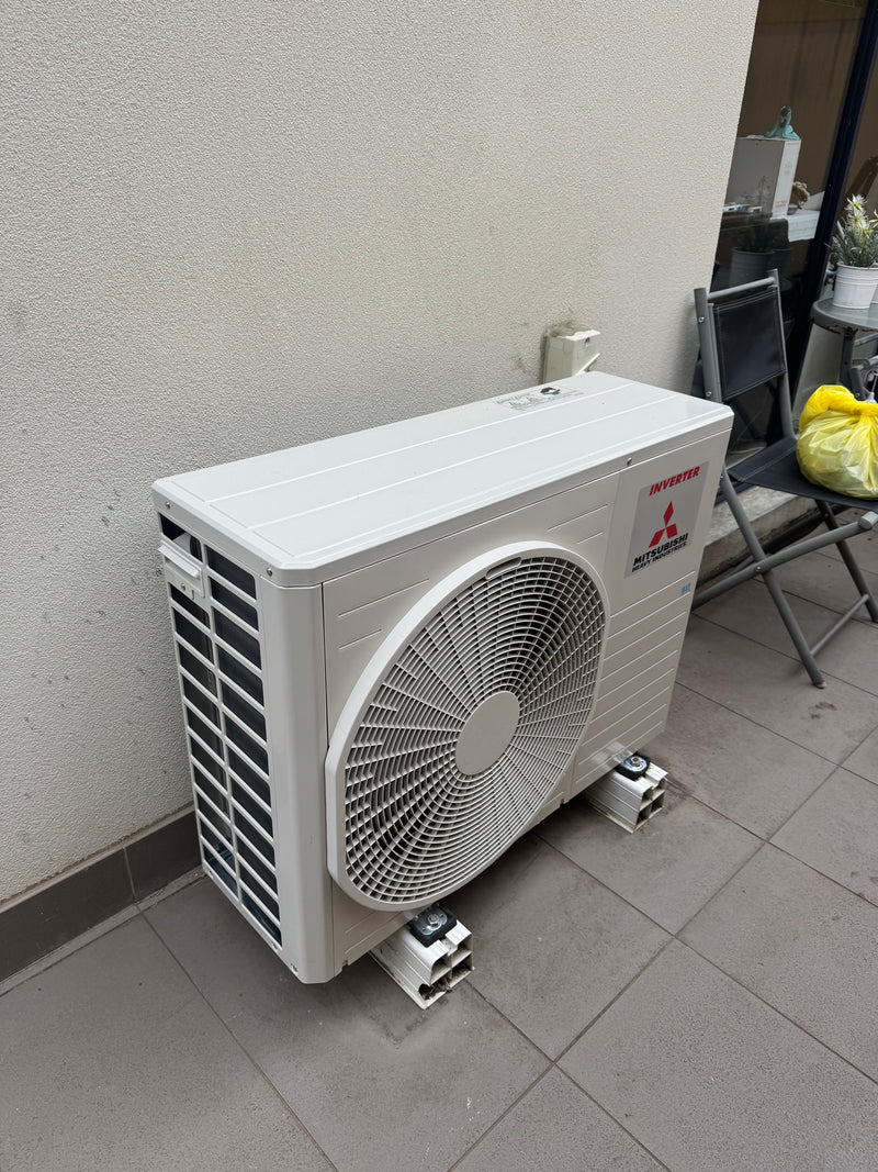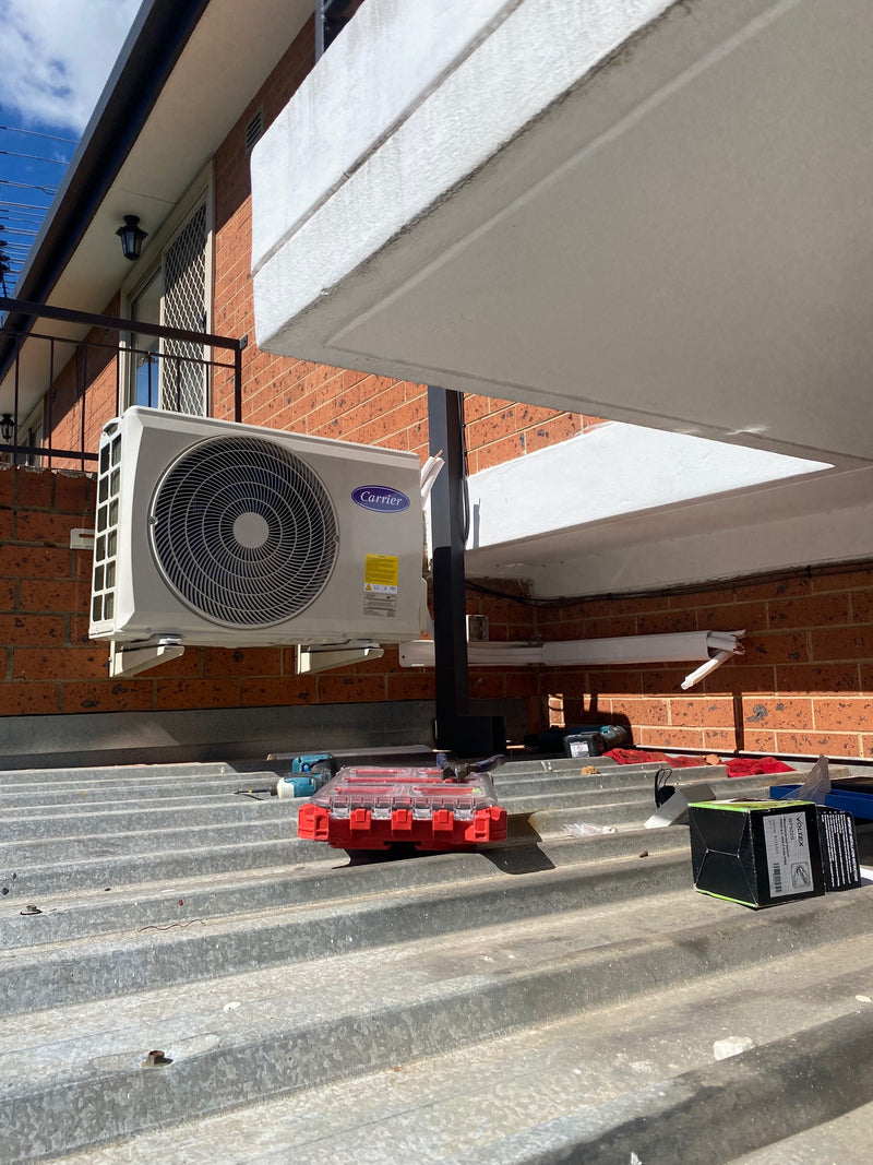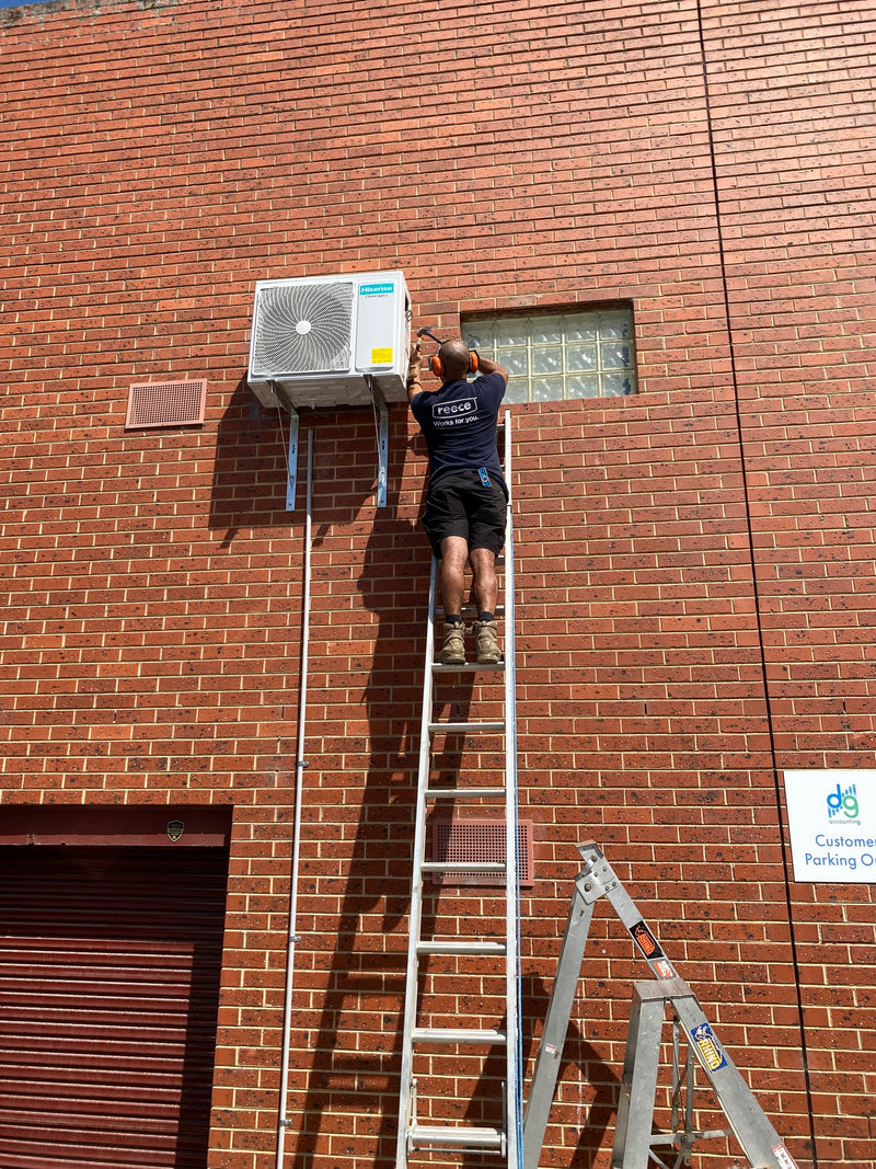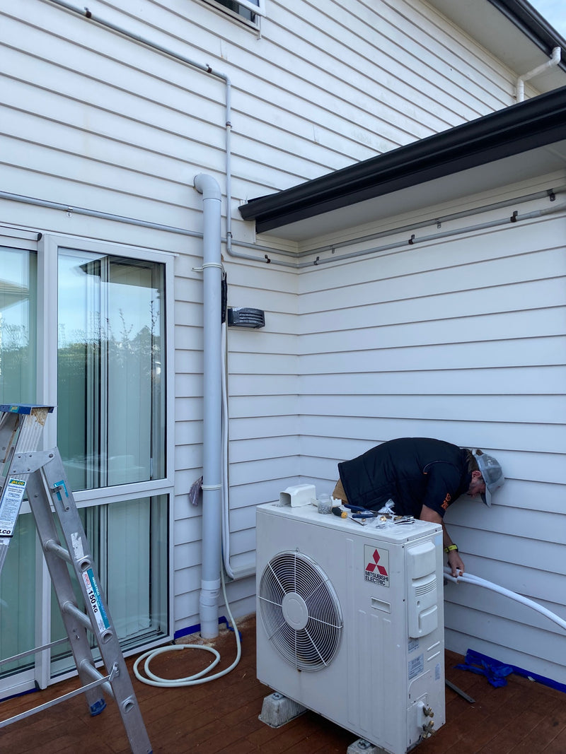 It means that the outdoor unit is directly behind or below the indoor unit. The outdoor unit is mounted on a concrete paver. An extra charge will be applied for any installation which does not fit the criteria below.